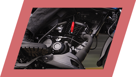 A definite head-turner, the bold tank design with sporty shrouds makes the bike exude an aura of aggression and energy.
