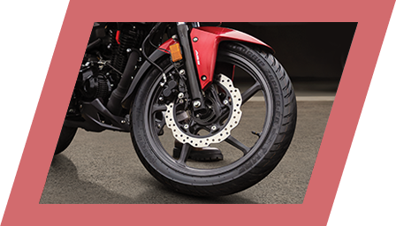 The 276mm petal shaped front disc brake comes with Anti-Lock Braking system (ABS) that gives superior control and heightened steering ability even when braking hard.